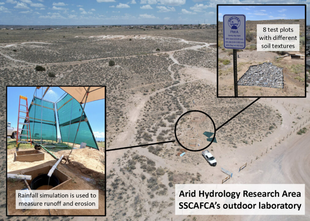 Understanding infiltration and runoff dynamics is crucial for water resources management. In dryland watersheds, infiltration is a complex process influenced by a multitude of factors from soil texture to plant cover. At the Arid Hydrology Research Area (AHRA), an outdoor laboratory established by SSCAFCA in 2022, we test the impact of different soil and cover conditions on runoff, infiltration, and soil erosion under controlled conditions. Tests are carried out using a rainfall simulator designed to mimic precipitation during intense summer thunderstorms. During the field trip, we will demonstrate the experimental setup, instrumentation, and run a simulator test. Participants will get a chance to get their hands dirty and experience field work aimed at improving runoff prediction and informing management approaches for dryland watersheds